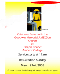 Resurrection Sunday Posted on May 24, 2008May 30, 2008 by goodwinmemorialchurch Resurrection Sunday was held at Chapin Chapel on the campus of Amherst College. Share this: Click to share on Facebook (Opens in new window) Facebook Click to share on X (Opens in new window) X Like Loading... Related