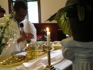 Pastor taking communion